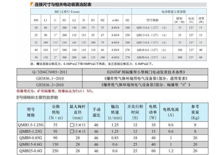 永利3044浏览器矿用小口径电动球阀是一种由球体旋转而开闭水路的新型矿用隔爆型电动球阀(以下简称电动球阀),由于其适应的供水压力范围广、不受泥沙、污水影响、供水通径大、工作过程中通电时间短、工作稳定可靠、是一种代用电磁阀的理想替代产品。 防爆型式:隔爆型;防爆标志:ExdⅠ,是一种由球体旋转而开闭水路的新型矿用隔爆型电动球阀(以下简称电动球阀),由于其适应的供水压力范围广、不受泥沙、污水影响、供水通径大、工作过程中通电时间短、工作稳定可靠、是一种代用电磁阀的理想替代产品。 防爆型式:隔爆型;防爆标志:ExdⅠ。 执行标准:Q/ZLH07-2008、MT/715-1997标准。 正常工作条件: 电动阀应在下列条件下可靠的工作: 海拔高度不超过2000m; 环境大气压80-110kPa; 环境温度-20-+40℃; 周围空气相对湿度不大于95%(25℃时); 具有甲烷混合物及煤尘爆炸危险的煤矿井下; 在无显著振动的地方; 在无破坏金属绝缘的气体和蒸气的环境; 在无滴水的地方。是一种由球体旋转而开闭水路的新型电动阀门,它由数字逻辑控制电路,方向控制电路,电流采样控制电路,工作状态指示电路等组成;接入24VDC电源后,控制端K1、K2有继电器无源点控制球阀的开启与关闭,K1与K2短接球阀打开,K1与K2断开球阀关闭。由电流采样控制电路检测球阀的工作位置, 工作状态指示电路指示球阀的工作状态: 球阀旋转开启,绿色LED亮;当开启到设定口径时,黄灯亮(此时电机不耗电);当球阀旋转关闭时,红灯亮(此时电机不耗电)。 四.主要技术参数 1. 防爆标志: ExdⅠ 2. 输入电压: 24V DC. 3. 工作电流: ≤70mA DC. 4. 环境温度: 0℃~40℃ 5. 环境湿度: ≤95%RH.(25℃时) 6. 大气压力: 80~110kPa 7. 水压适应范围 : 0.2MPa~7.0MPa。 8. 水温适应范围 : 0~60℃ 9. 球阀开启速度 : 6s~12s 10。