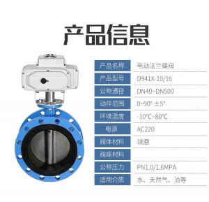 上海湖泉D941X电动法兰蝶阀产品简介: 电动软密封蝶阀作为一种用来实现管路系统通断及流量控制的部件,已在石油、化工、冶金、水电等许多...